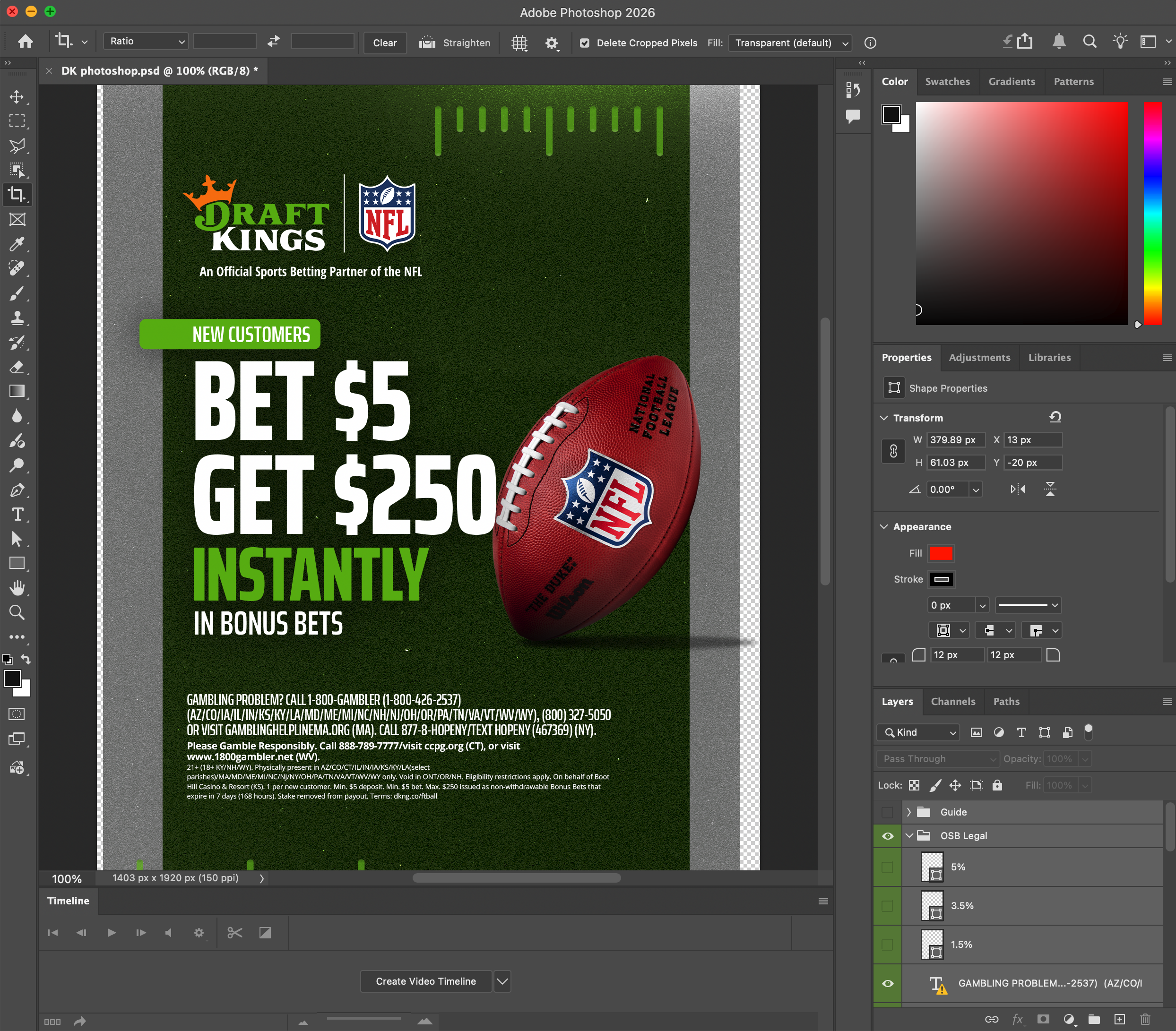 This project was an enjoyable and fast paced production, completed within 3 days. The only asset provided was a Photoshop file for the end card, with all remaining elements created independently. Production was completed using Adobe Creative Cloud including After Effects, Photoshop, and Illustrator, along with Cinema 4D for the football models and Rotato for the 3D phone animations.